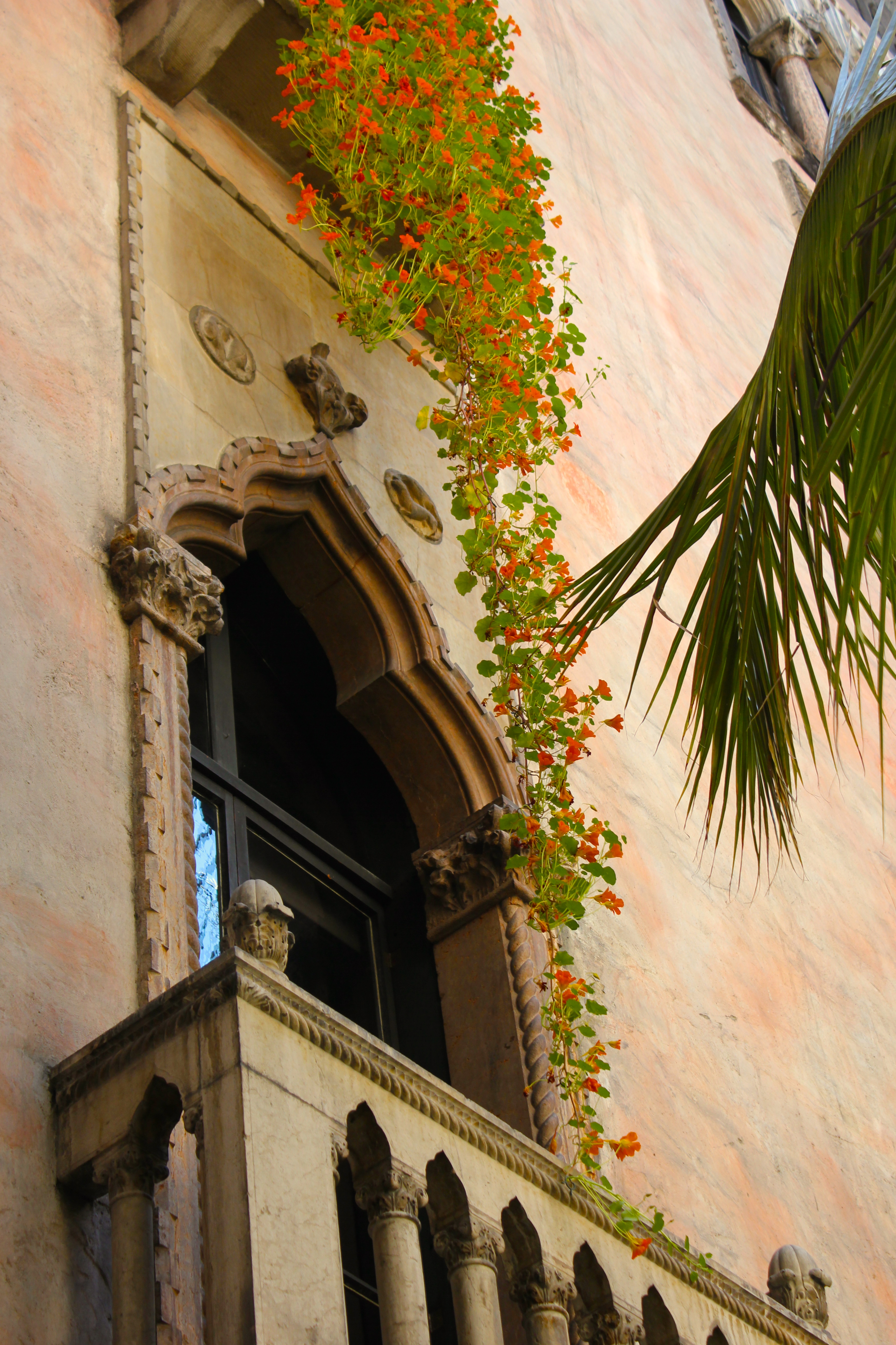 From the Raphael Room, I walked into the Tapestry Room and stood in the darkened, atmospheric space near a painting of the Assumption of Mary and a horrid sculpture of painted lindenwold representing the head of Christ, crucified. The backlit greens and oranges of Nasturtium flowers and their circular leaves, hung past an open balcony, like a veil I wished to wrap all around me. I live in a modern world, where the savage torture of human beings continues. My shoulders slumped at the thought of a contemporary Christ, how his crucifixion would be broadcast through social media.